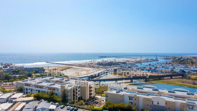 Welcome to this beautiful single-story end unit condo which features 2 beds, 2 baths, and an open expansive living space. You will love living in the spacious 1191 sq.ft. open floorplan with community amenities nearby and the beach a short walk away. The spacious kitchen boasts designer touches with generous counter space, including granite countertops, recessed & pendant lighting, and elegant laminate wood flooring. The primary bedroom offers harbor and pool views, a slider door to the balcony, and a large walk-in closet. The primary bathroom offers plenty of room, dual granite sinks, & walk-in shower, adding a touch of sophistication. Lovely Guest bedroom w/ en-suite bathroom w/ granite upgrades and is separate from the primary bedroom area, great for privacy. Easy elevator access from the community garage, along with two parking spaces in a secured gated garage. Additional features include an interior Washer/Dryer and Air Conditioning for your comfort. Lots of storage w/ closet off the balcony & in the garage. Gated Community with resort-style amenities nice large Pool, Spa, Fitness center, BBQs, & Clubhouse. Bonus-Complex offers EV Charging Stations! The complex is West of Coast Hwy and borders a 9-mile bike trail along the San Luis Rey River. Many new culinary eateries are just within a short walk or ride and beach activities year-round. Walking distance to Beaches, Restaurants, Pier, Bike Trails & Harbor Activities.