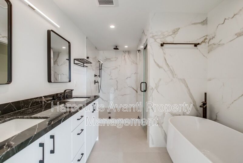 Retreat to the spa-inspired primary suite with floor-to-ceiling tile, soaking tub, rainfall shower, and designer fixtures. Additional highlights include a two-car garage with epoxy floors, top-rated Del Mar schools, and walkability to the beach, restaurants, and shops.